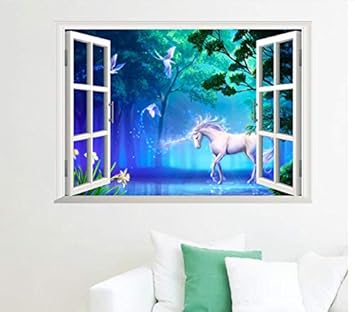 Hallobo Wandtattoo Einhorn Im Wald Wandaufkleber 3d Wandbild